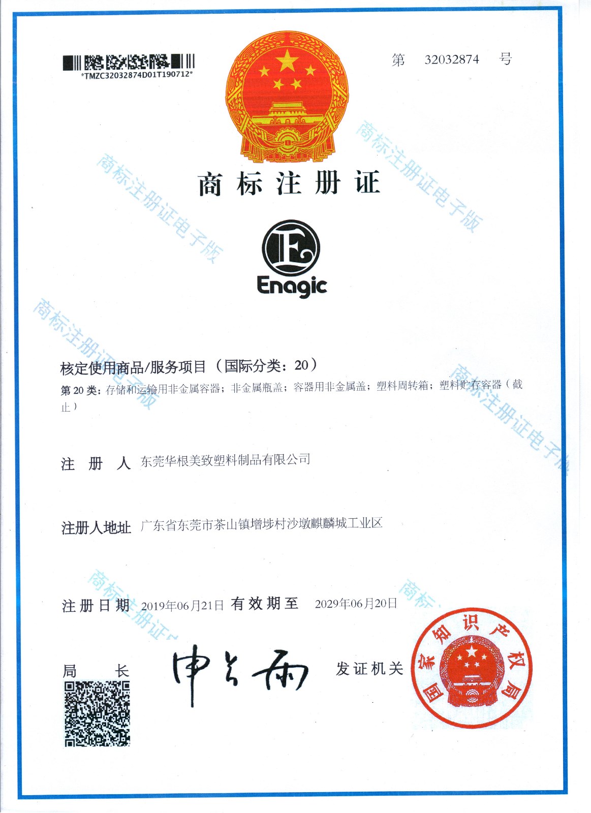 • 商標(biāo)注冊證書